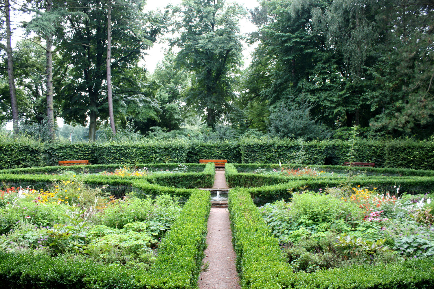 Westlich des Parkeingangs Südring liegt der kleine formale Rondellgarten. Ursprünglich als Tanzplatz angelegt, wird er von geschnittenen Buchenhecken mit Sitznischen gesäumt. Ein sonniger Sitzplatz mit einer Fontäne umgeben von Dahlien lädt hier zum Ausruhen.